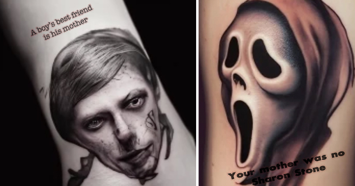 There are bad tattoo ideas then there are these horror movie quotes (20 Photos) by: Zach Jan 17, 2024 01/17/24 1091 Liked! 33 Disliked 0 humor