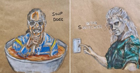 Dad spends a decade drawing cartoons on his kid’s lunch bags (30 Photos)