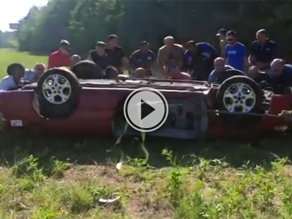 Man trapped in flipped convertible saved by strangers (Video)