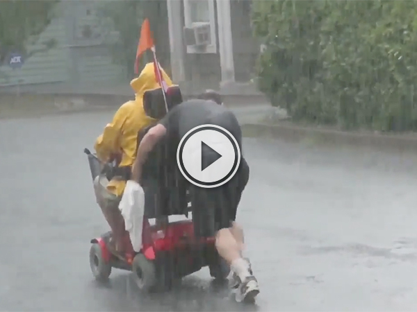 Good Samaritan helps push man’s wheelchair uphill in the rain (Video)