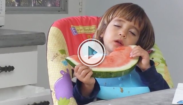 Toddler struggles to stay awake while eating watermelon (Video)