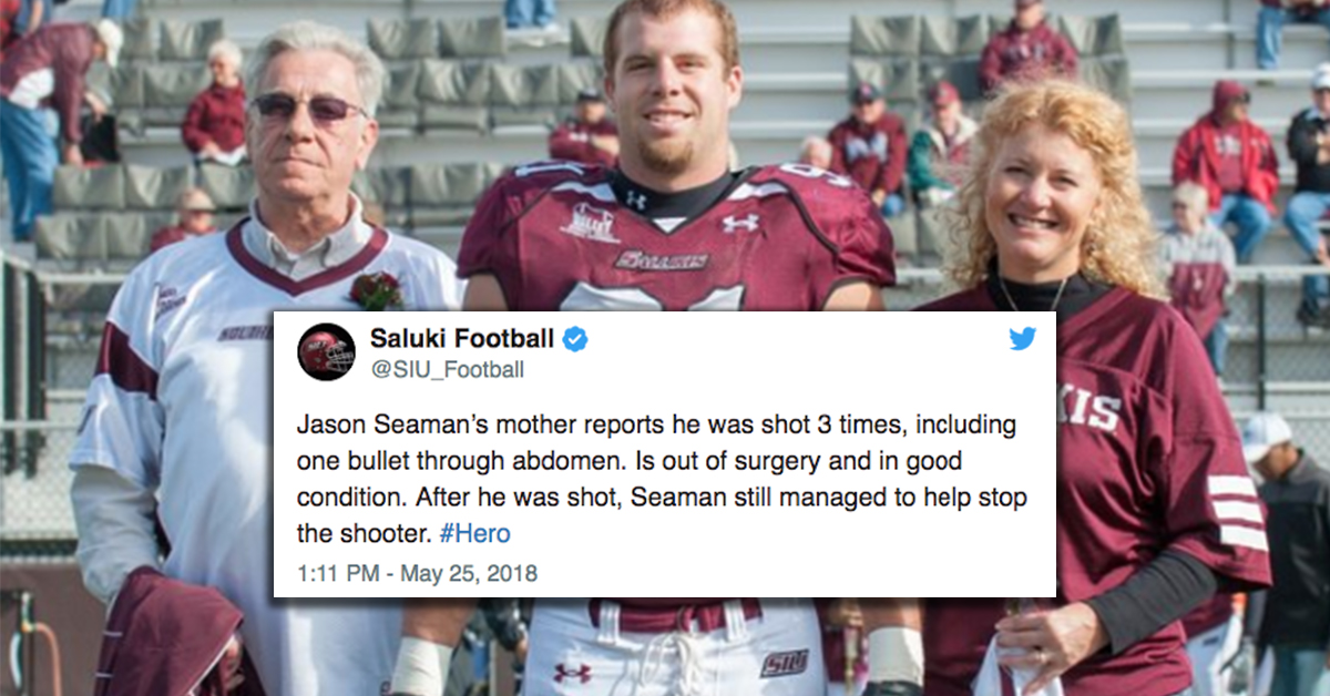 Former college football player takes three bullets tackling school shooter, protects students