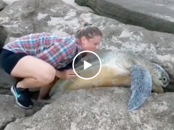 Couple comes to the rescue of sea turtle stuck in crack (Video)