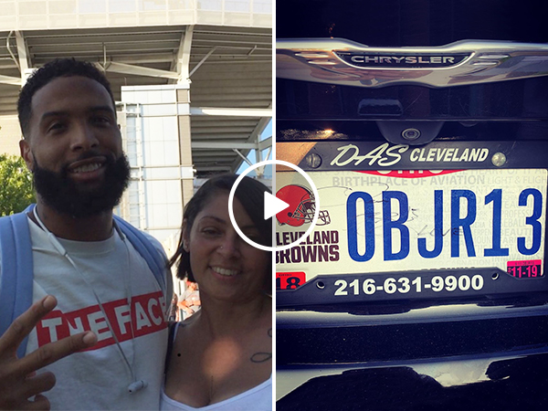 Good guy OBJ pulls over to sign lucky Browns fan’s license plate (Video)