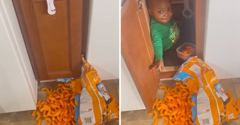 If I fit in the cupboard, I’d hide snacks from my wife like this too (Video)
