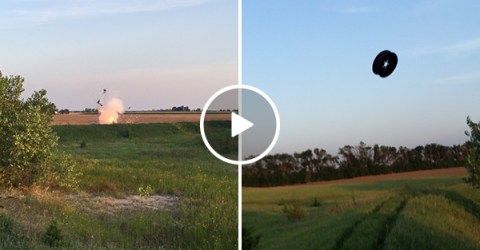 Exploding tire has some serious hang time (Video)