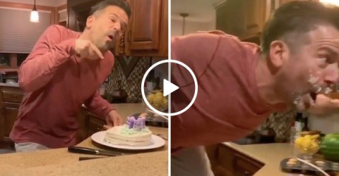 Dad goes full dinosaur on some easter cake (Video)