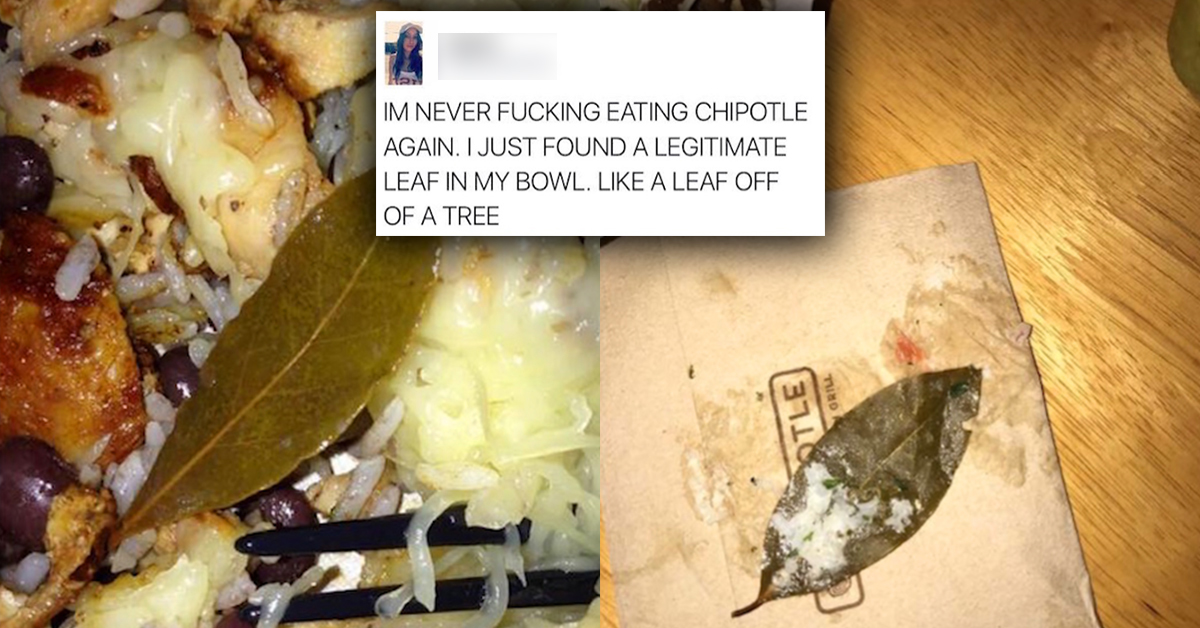 People are losing their sh*t over ‘leaves’ in their Chipotle food (14 Photos) by: Ben Feb 20, 2017 02/20/17 0 Liked! 0 Disliked 0 humor