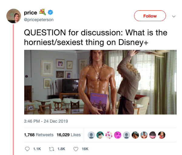 Twitter user Price Peterson asked the question “What is the horniest/sexiest thing on Disney+”, and what started out with obvious answers, like Jessica Rabbit and Marvel superheroes, quickly descended into childhood obliterating madness.