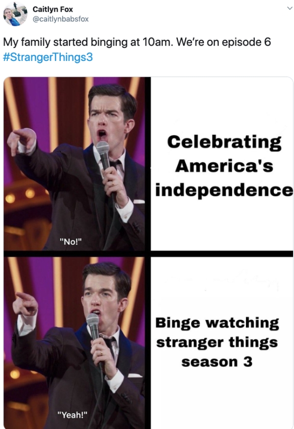 Alright, so I did not watch the new season of Stranger Things the day it came out, but I binged all 8 episodes on the 5th of July, aka America’s raging hangover day. Fair warning, there are spoilers ahead so if you haven’t finished season 3 don’t come in here. Okay you’ve been warned, let’s dive into everyone’s reactions to the gang in Hawkins.