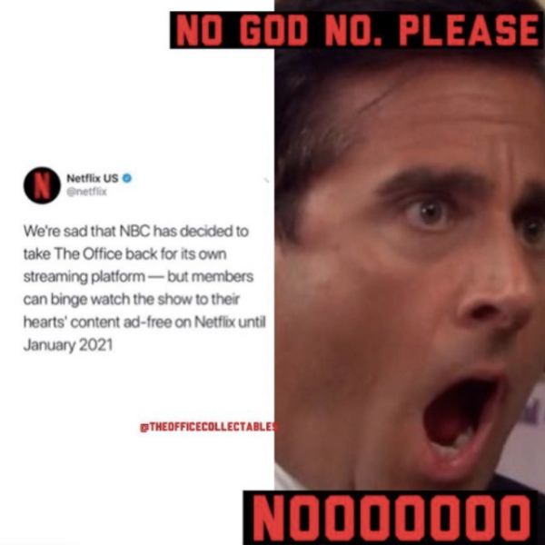 In case you haven’t heard, NBC (currently known as the devil) will be starting its own streaming service in 2021 and therefore taking ‘The Office’ rights back from Netflix. People are not taking the news well. I mean, what are we going to have on in the background while we eat, fuck, sleep, eat again, etc!?
