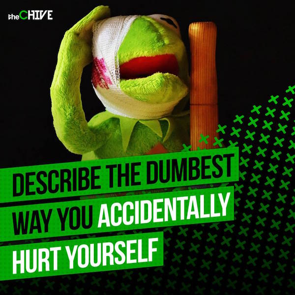 True story, I went for a jog this past weekend and threw my back out after I sneezed mid-stride (I’m 34) and it got me thinking. After having a mild existential crisis, and a massive pity party, I decided I’d ask you guys via our IG page to describe the dumbest ways you hurt yourselves. Thankfully, based on your responses, I guess I’m not the only vulnerable one, susceptible to both incredibly pathetic and stupid mishaps.