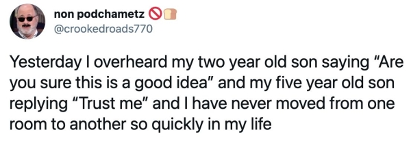0 Liked! 0 Disliked 0 Times parents caught their kids trying insane stunts bc…well…they’re kids (31 Photos and GIFs) by: Jacob In: Funny, Kids, parenting, Shit Happens, WTF Mar 28, 2021 0 Liked! 0 Disliked 0 1 Like this post? 0 Liked! 0 Disliked 0