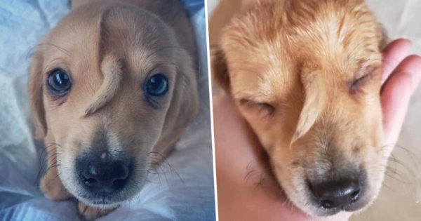 A Missouri-based rescue foundation found the golden pup wandering outside in the freezing cold with another, older dog last week. He had a foot injury, but what really took rescuers by surprise was the second tail protruding from between his eyes.