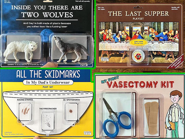 Dan is INCREDIBLY talented and creates custom, fun, adult-themed figures which he highlights on his Instagram page. He’s designed toys based on TV shows, movies, and video games as well as pure genius original content. Think of him as the meme god of toy-making.