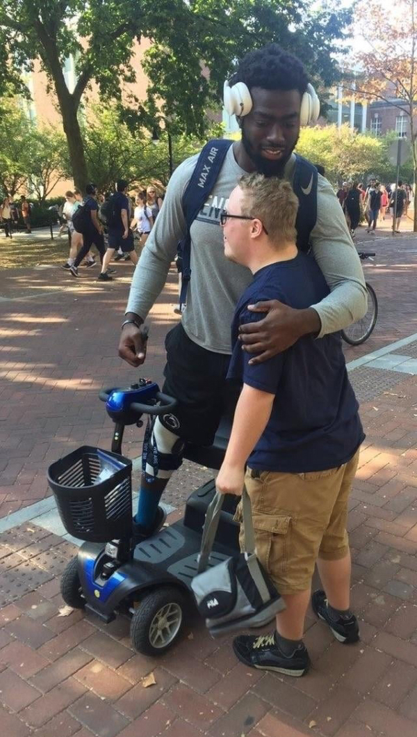 Zack, a special needs student at Penn State, was sad to hear his favorite football player on the team injured his knee. So he gave the guy cookies, a note and a hug.
