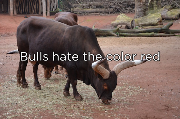 We’ve all been led to believe that bulls hate the color red and will charge when they see it. The truth is, however, bulls don’t even see color. The red is imperceptible. What they really hate, is having shit waved around in their face—kind of like you and me.