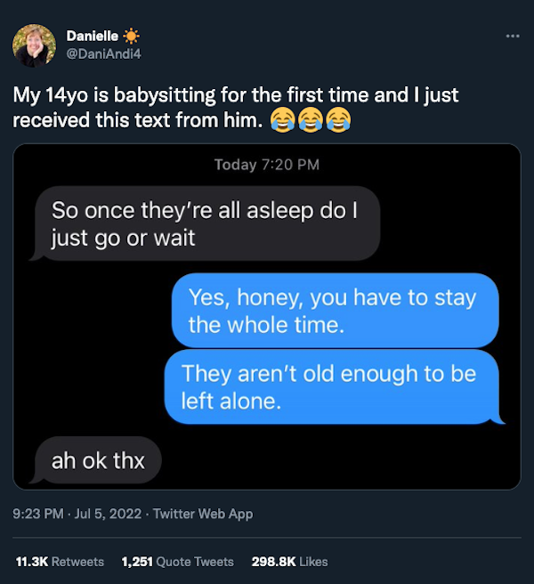 humor 1217 Liked! 35 Disliked 0 Babysitting stories that are certainly an adventure (26 Photos and GIFs) by: Jacob In: Humor, Kids, Shit Happens, Work Sucks Jul 13, 2022 1217 Liked! 35 Disliked 0 1 Like this post? 1217 Liked! 35 Disliked 0