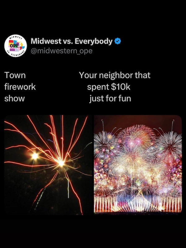 humor 4316 Liked! 11 Disliked 0 If you’re in the Midwest on the 4th of July, these memes are for you (30 Photos) by: Jacob In: Humor, Meme, Too True Jul 4, 2025 4316 Liked! 11 Disliked 0 1 Like this post? 4316 Liked! 11 Disliked 0