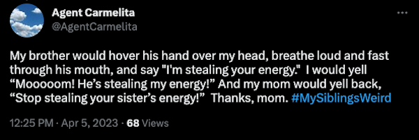humor 575 Liked! 158 Disliked 0 Siblings are weird, and everyone has a perfect reason why (29 Photos and GIFs) by: Jacob In: Humor, Weird, WTF Apr 16, 2023 575 Liked! 158 Disliked 0 1 Like this post? 575 Liked! 158 Disliked 0