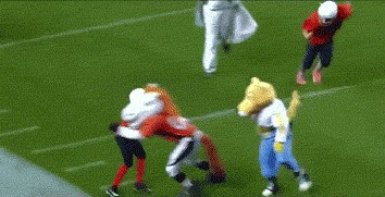 Upset about the Super Bowl? Mascots wrecking pee wee players will help (15 GIFs)