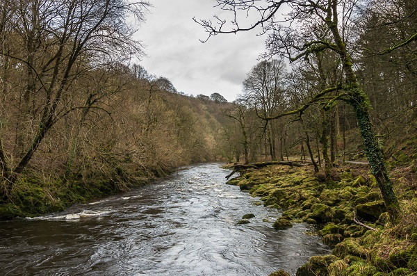 This calm and beautiful patch of water is ‘The Strid’ at Bolton Abbey, Yorkshire, England.