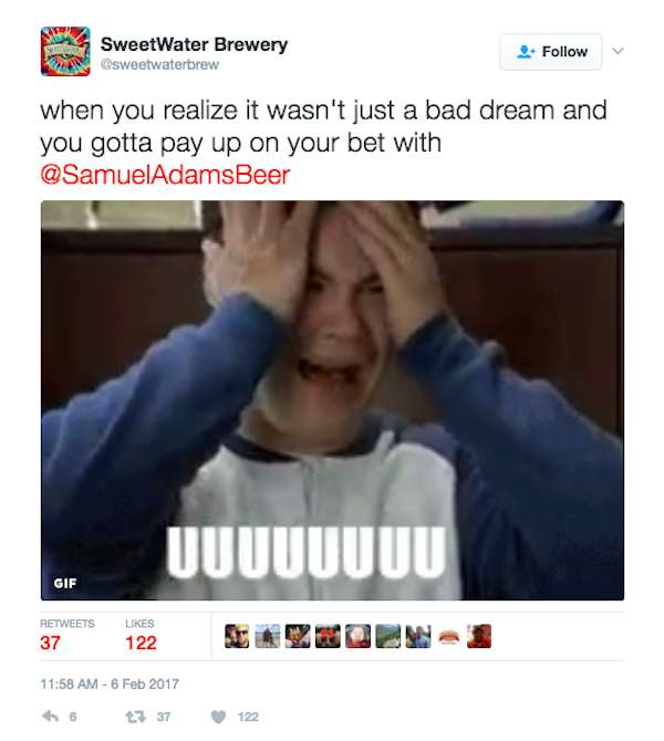 SweetWater pays up on bet with Sam Adams after losing Super Bowl (4 Photos)
