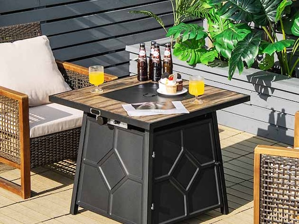 Enjoy outdoor gatherings with this 28” propane fire pit table. Using a standard 20lb propane tank (not included), light the burner and adjust the flame with the control knob as you like. No need for a fire? No problem! It can transform into a table for a morning cup of coffee or a glass of wine in the evening.