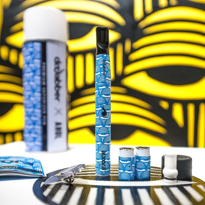 The blue and white Dr. Dabber X AHOL kit complete with an authentic faux spray can with custom AHOL honey mat, atomizers, hat/lapel pin, charging dock, dab tool and silicon storage container. Take home the GOLD TICKET! 4 LUCKY customers will take home an AHOL Sniffs Glue original painted canvas with purchase of kit.