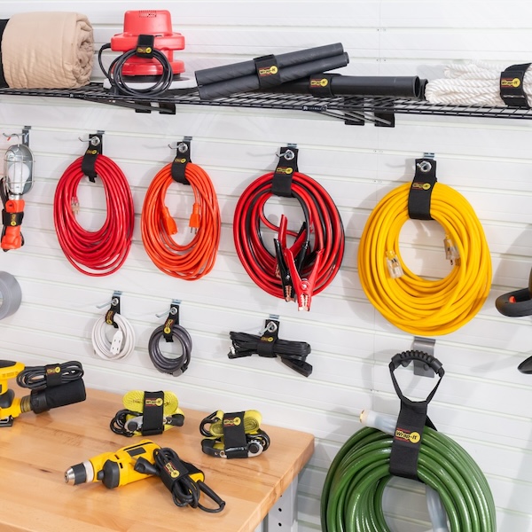 Bulky cords & jumbled hoses stand no chance with these innovative storage straps. Get your bulky cables, hoses, cords and ropes looped, wrapped tight and stored up and away like a power-lifter with these best-selling Heavy-Duty Storage Straps. Made with heavy-duty weatherproof polypropylene, industrial strength hook and loop, and a rust-resistant stainless steel grommet, these heavy-duty storage straps are built to last—indoors or out. Get yours now for 20% off automatically applied at checkout!