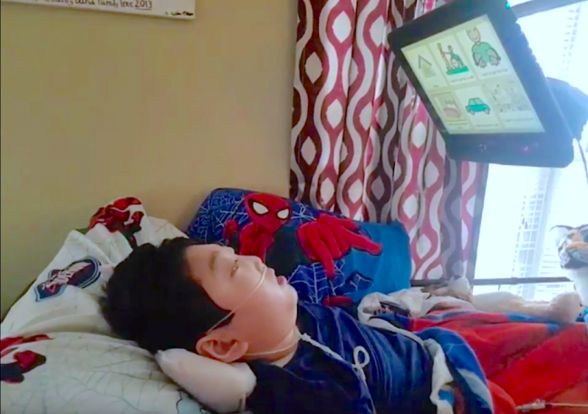 The video begins with 12-year-old Ivan laying in bed, Spiderman pillow by his side. The room is bright, medical equipment hums in the background, a monitor hovers inches from his face. Then, you hear it.